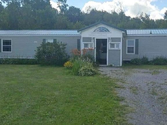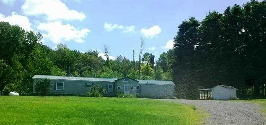 Quiet country living on 5.6 acres in this 3-bedroom/2-bath single-wide manufactured home. It's been well maintained and move-in ready. It features large oak eat-in kitchen with new vinyl floors, refrigerator and microwave stay; new laminate floors in living room and 2 bedrooms; large living room; master bedroom with master bath, garden tub and shower; all new (except two) windows; new metal roof; two storage sheds; front entrance mudroom; approximately 5 acres wooded with lots of turkey, deer and wildlife; snowmobile trails nearby. Call soon.