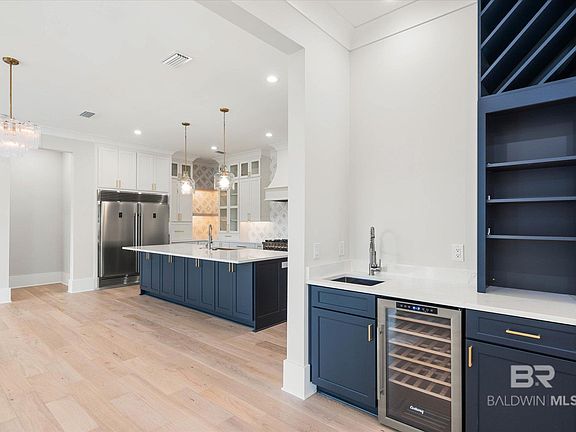 Welcome to Waterways Subdivision, one of the most sought after Luxury Waterfront Neighborhoods on the Gulf Coast. A private gated community, offering 60 private homesites, built fortified gold, nestled among 20 acres on the Intracoastal Waterway with nature trails, hi-speed fiber optics, private boat launch, private Marina w/ deeded Boat Slips, day slips for guests, private Community Pool w/ trellises for outdoor dining/gathering and a large common area/green space for enjoying picnics and coastal breezes! HOA fees include lawn care and irrigation for your private residence. Waterways homes are all appointed with high-end finishes, large crown molding & baseboards, casement windows & doors, streamline SS appliances w/ availability to upgrade, gas cooktop dual fuel range, soft close custom cabinetry & drawers, marble, quartz or granite countertops, engineered hardwood, upscale ceramic throughout baths w/ spacious shower in Primary, tankless hot water heaters and folding glass door system creates an amazing space in the Four Seasons Room, painted brick and hardi exterior w/ cypress and copper accents w/ beautiful accent lighting. Exterior photo is a rendering for visual purposes only and could differ from actual elevation. This 3bdrm/3.5bth plus large bonus room offers upgraded 48" range, fireplace, wet bar, separate sitting for a work station and accent walls. Tons of upgrades in this new build with incredible water views from the Living Area and Primary! Buyer to verify all information during due diligence.