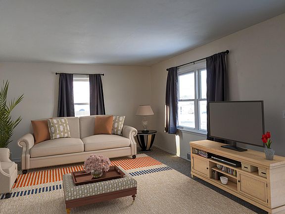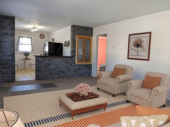 So many updates within the last 5 yrs, spacious rooms and privacy fenced backyard, what more could you want...Oh how about a new roof, new windows, high efficient furnace with central air, new bathroom, new storm door and a 20' x 17' deck! Living room is open to kitchen with all new appliances plus breakfast bar with stools. Two bedrooms with new full bath between. Lots of storage. Oversized garage is 14' x 21' oversized 1 car. Windows have lifetime warranty. Ready to move into, even the washer and dryer are included. Some furniture is virtually staged.