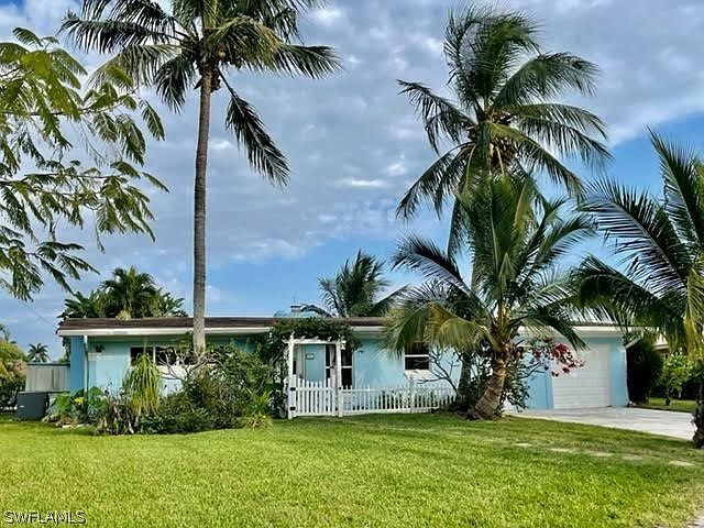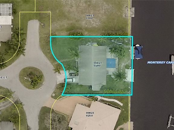 This is Florida living just like you imagined it! No bridges, Gulf access, turnkey home with boat, trailer and boat lift included. This Old-Florida style home in the popular Cape Coral Yacht Club community has an open floor plan and was remodeled in 2017-18. Complete new plumbing, new windows, updated bathrooms, and newer roof completed in September 2015 all on an oversize lot, next to million dollar homes. This home has 3 Bedrooms, 2 full bathrooms, enclosed garage (with Air conditioning) for 4th bedroom/office/studio, pool with a rock waterfall, wood burning fireplace, all located at the end of a cul-de-sac on a quiet, palm tree-lined street. It has at least 100 feet of canal frontage with no bridges and a 10,000 lb boat lift with BOAT & TRAILER INCLUDED! It is only a couple minutes to the river, a boaters dream.. Bright, spacious, and tropical feel!