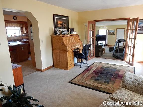 5 acres Taylorville City Limits! Property overlooks & almost touches Lake Taylorville. Improved w/2400 sq. ft. 1 1/2 story home built in 1996. 28 x 23 family room has large windows overlooking lake & has fireplace. Heated & insulated det. 2+ car garage + 30 x 50 pole barn w/concrete in approx 2/3 of bldg. (heated & cooled). 2 of bedrooms upstairs have 2 rooms each...study room or dressing area. Walk-in closets. 4th bedroom could be used as an office!