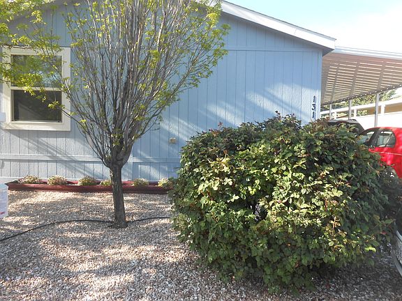 This beautiful 2 bedroom 2 bath home shows pride of ownership w/many thoughtful upgrades. Large eat-in kitchen features island & plenty of cabinet space. Entertain in formal dining room. Spacious master suite includes generous walk-in closet, garden tub, large separate shower & dual-sink vanity. Second bedroom & full bath are separated from the master suite. Versatile floor plan-office/study/den could become a 3rd bedroom. Carpet in bedrooms, wood flooring in living room & dining room. Laundry room w/storage. Raised garden beds ready for spring planting-a gardener's delight! Over-sized shed-perfect for workshop or hobbies. Relax on covered composite deck or have a BBQ on non-skid tile patio. 2-car carport. Located in adult community close to shopping and amenities. Home recently re-leveled