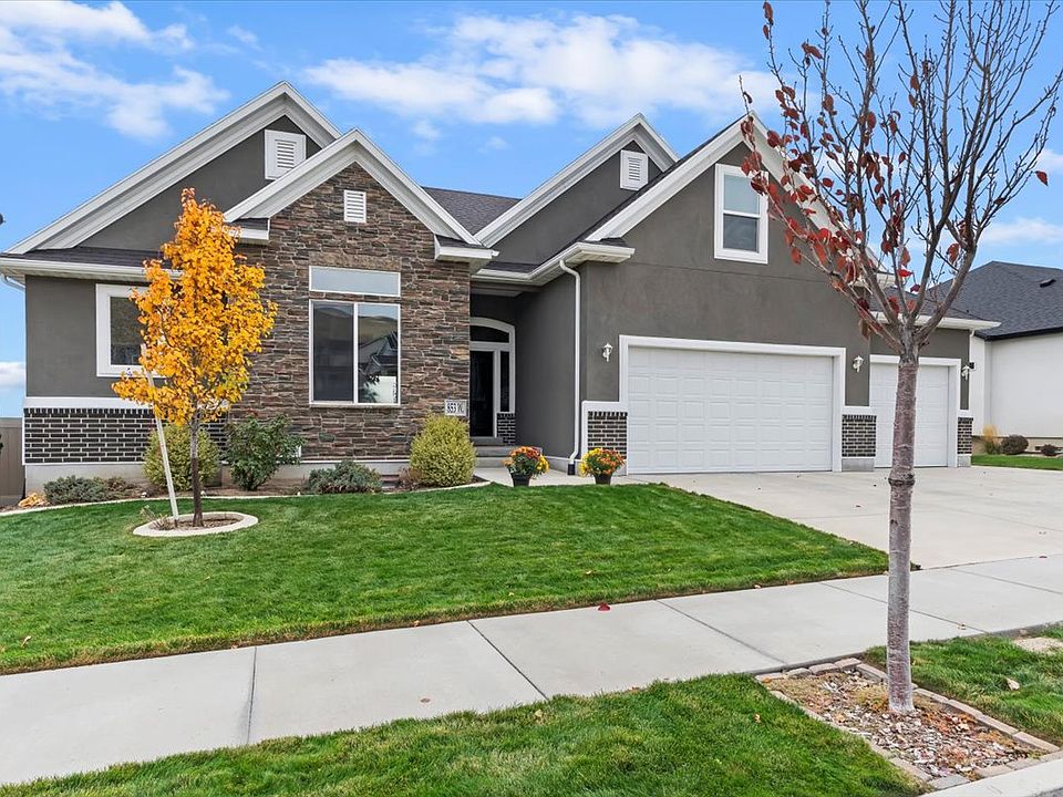 OPEN HOUSE NOV. 8th 11AM TO 1PM ***STUNNING VIEWS of the LAKE, MOUNTAINS and VALLEY from this HIGHLY DESIRABLE & VERY CONVENIENT location ---- INCOME PROPERTY/ADU - basement w separate kitchen & laundry, walk-out entrance, auxiliary gas heaters, more. Most recent rental contract was for approx. $1,600 plus $175 avg. utilities ---- Master Suite, w bay window, vaulted ceiling, oversized shower, water-closet, huge walk-in closet and views of the valley & lake, and 2nd bed/office w views of the mountains, both on the main floor ---- kitchen w stainless appliances, granite countertops, box window, large pantry and large center bar ---- great-room, again with stellar views and vaulted ceilings ---- beautiful maple fireplace mantle, banisters, and blinds throughout ---- 9 and 8.5 ft ceilings in the main/basement. Amazing 11 ft ceiling w crown-molding and french doors in office/2nd bed ---- oversized windows, including day-light basement ---- large covered deck (views are spectacular / feels like a whole other room) ---- speakers for surround or entertainment mounted in the ceilings - living room, kitchen, office, and master bath ---- 2nd HVAC unit up stairs keeps the whole house pleasant ---- fully landscaped, tiered backyard w terraced patio, lawn, fruit trees, and raspberry & strawberry patches ---- 3rd-car garage extra deep. 4 ext parking spaces. ---- close to shopping, restaurants, I-15, SR 92 Timp Hwy, Silicon slopes & more ---- forthcoming Traverse developments include an LDS Temple, Target, Whole Foods, and numerous other improvements (subject to change until complete) ---- warranty included ---- MAKE THIS AMAZING UPGRADED HOME YOUR OWN! -------- Approx* info on the 6 beds (buyer should measure for exact measurements) 1. Master - approx 18 x 13 ft 2. office/2nd bed approx 14 x 12 ft 3. Upstairs bed approx 10-13 x 20-22 ft (irregular shaped) 4. Upstairs bed approx 8.5-10.5 x 8.5-12 ft (irregular shaped) 5. Basement Master approx 15.5 x 12 ft 6. Basement 2nd bed approx 11.25 x 10.5 ft