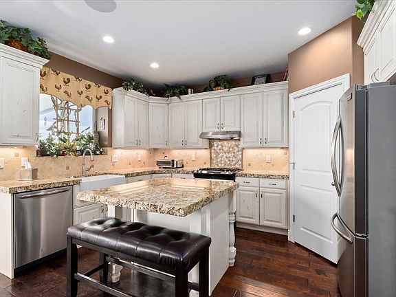 Fully landscaped tiered backyardTerraced patioLarge covered deckRaspberry and strawberry patchesFruit treesKitchen w stainless appliancesLarge pantry