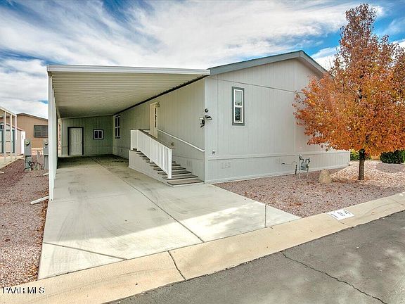 Wonderful 3 Bedroom and 2 Bathroom home on a corner lot in the 55+ community of Country West Mobile Home Park. Centrally located in Chino Valley, the home offers a spacious living room with a vaulted ceiling, beautiful kitchen with attractive countertops and stainless steel applicances. Enjoy the separate laundry room with side entrance. The primary bedroom suite is spacious and has a bathroom with a walk in shower. The carport is extra deep, and don't forget to notice the shed. The home has been recently painted and ready for you to move in!