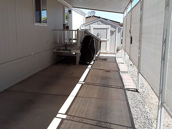 This home is located in the desirable 55+ Country West Manufactured Home Park located in Chino Valley, AZ & is only 10 minutes from Prescott! The lot rent is $440.00 per month (this includes water & garbage pick up). Utilities average $75.00 per month. The open concept floor plan has the living room located in the front and the bedrooms in the rear. It has been beautifully remodeled & landscaped in 2020/21. In addition to the home's square footage, there is a large attached Arizona room for extra space to enjoy your morning coffee while surrounded by mature trees. The home has a new roof, fresh paint inside & out, new vinyl wood plank flooring, new stainless steel kitchen appliances, new dryer (the washing machine was replaced in 2018), all new lighting fixtures & much more! There are 2 large sheds (8x8 and 8x10) for all your storage needs and the carport has room for 2 vehicles. Serious inquiries only, please. **Potential buyer will need to be approved by the park prior to purchase.