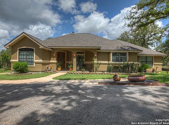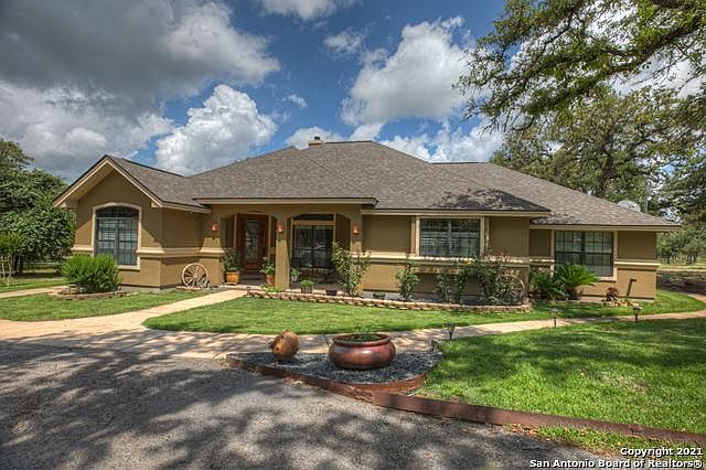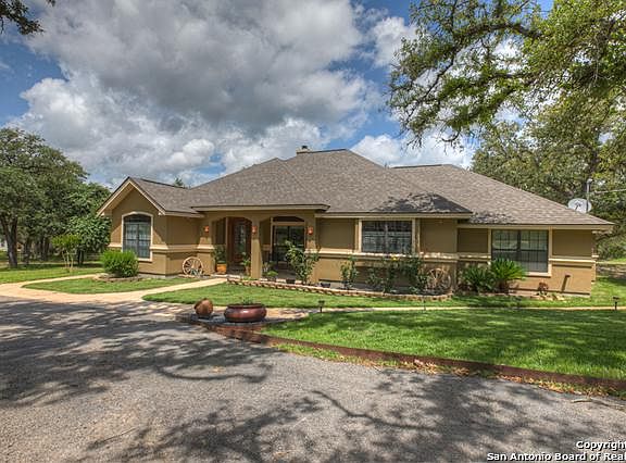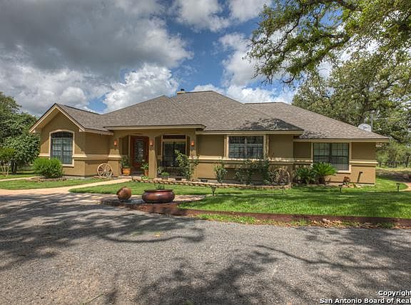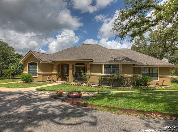 Gorgeous & spacious w/5 acres to enjoy! Grand entry with a study that can be used as a 4th bedroom. Gourmet kitchen w/Viking 6-burner gas stove & GE monogram vent & double oven. Stone pillars offer a decorative flair. Large kitchen island, walk in pantry & stone breakfast bar w/granite countertops. Master bedroom has outside entry to large covered patio. Jack & Jill bathroom separate 2nd & 3rd bedrooms. Surround sound w/built in speakers in living room and outdoor patio. Drive thru Barn with 30x48 horse stalls and implement/equipment storage. Fenced in property with circular driveway. Keypad entry gate for added security. Refrigerator conveys as an added bonus! Washer and Dryer do not convey. Convenient 10' x 14' shed for outside storage. Great 10' x 10' covered dog kennel. Abundant wildlife!