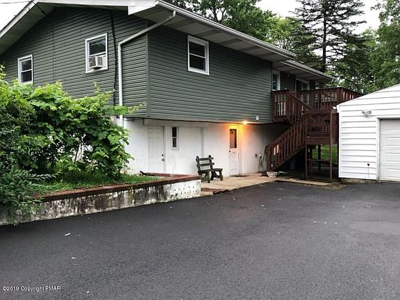 Two floors, kitchens, baths, living rooms and 1 large family room, 4 bedrooms total which includes one downstairs, Brand New never used Stove in upstairs kitchen, 2 car detached garage. Back of house is ground level and has 2 walk out doors. Near all major shopping! Great in law living on ground level. Nice deck and downstairs patio area. Stroudsburg School area. Don't pass me up! You can't ask for much more than this.