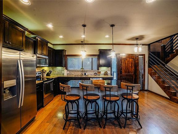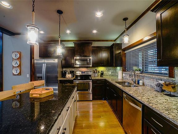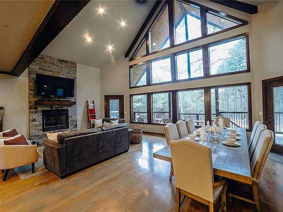 "Sundance Lodge" is a truly custom home featuring tons of unique finishes. Hardwood floors, wood beams, granite counters, custom trim and more make this home stand out! The kitchen includes custom cabinetry, stainless appliances and a sliding window over the sink. The large living area is open to the outdoors with a wall of windows and doors leading to the back deck. Two master suites downstairs also lead outdoors. Each master has a unique spa-like bathroom, one with a jetted tub. Off the living area is a laundry room and half bath. Upstairs you will find a loft overlooking the living area with full bath and two more master bedrooms! One master bedroom has a private balcony while the other has a built-in desk. Situated on 1.5 acres in the back of Kaniatobe Trails Southwest, this cabin offers plenty of privacy amongst the tall pines!