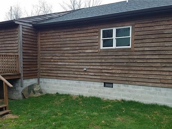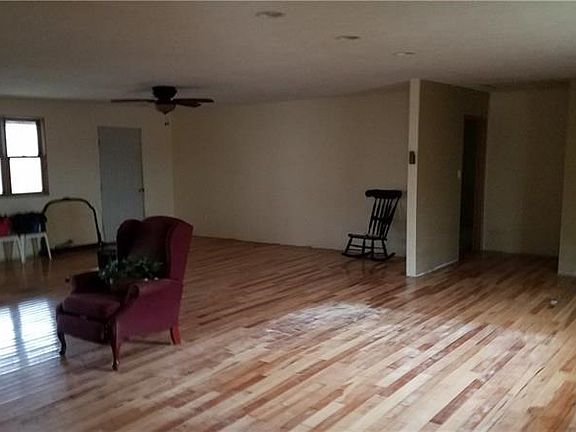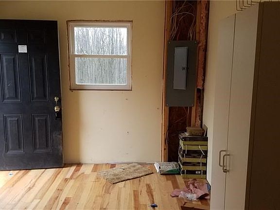 Endless possibilities on this ranch home w block foundation on approx 10 acres. Property is being sold "as is where is". Wood framed home w hardwood floors, newer kitchen and open floor concept. Rear patio porch, large covered front porch. Home is in need of interior trim and carpet. needs heat source. needs steps into basement and front rails. Home has been winterized. Back building in need of repairs or removal. Three beautiful stone fireplaces in back building.