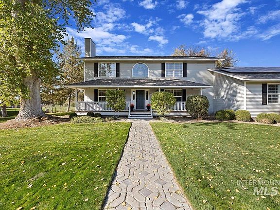 Dual Gas Fireplaces ready for holiday memories! It is rare that a home becomes available on this NW country lane. Raise your family where there is no HOA. Five bedrooms for the family and a full acre for pets and animals. Bring your inner "Magnolia" as you tour the flowing farmhouse floor plan featuring hardwood floors and built-in cabinetry throughout. The giant family room with oodles of storage is begging to host a late-night party full of giggling kids. (No worries if they leave the lights on all night; your power bill is offset by the brand new solar system.) Gas stove, stainless steel appliances and a backyard window makes this kitchen the center of home activity. Fruit trees and garden space for spring growing. Plenty of RV/toy parking beside the 25'x40' 3 car garage/shop. Let yourself fall in love with 853 Rim View Lane E from the Farmhouse Porch to the master with jetted tub and private balcony. New septic/drainfield installed in 2023. Solar paid at closing with acceptable offer. Tour today!