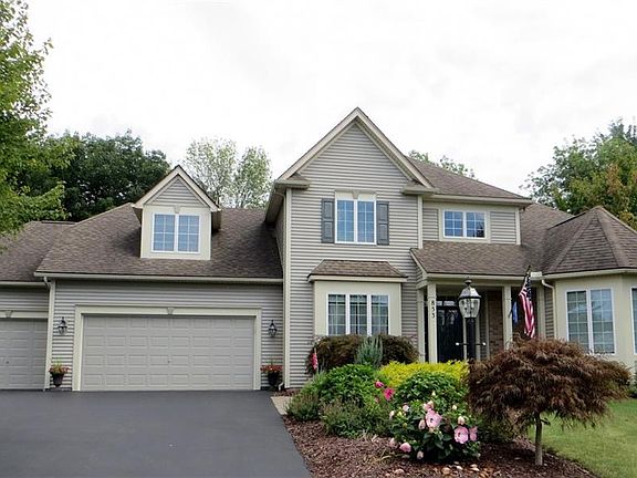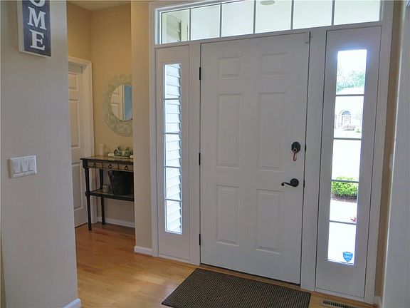 Stunning 4 bedroom 2.1 bath open concept contemporary colonial. Grand two-story foyer. 1st floor master suite w/walk in closet & tray ceilings. 2 story great room offers plenty of natural light w/a complete wall of windows, gas fireplace and built-ins. 1st floor office/den w/French doors. 1st floor laundry, skylight, 9 foot ceilings, central air, solid surface counter-tops, pantry, convection oven & dishwasher are just a few extras to be enjoyed. Casual or formal dining, surrounded by windows is tranquility in your own backyard, which overlooks wooded land & West Creek (adjacent to protected wetlands). Double glass sliders to the private stone patio & composite deck giving additional outdoor living space. Tastefully landscaped. Garage and interior stairs access the basement. Double wide driveway & parking area lead to the garage where 3 cars fit w/ease. Additional square footage possible in the unfinished bonus room above master suite. Appliances (new washer/dryer) included.