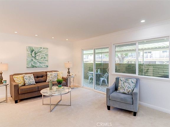 This Laguna Woods home is a Must See! The spacious “Casa Linda” floorplan has two Bedrooms and two Bathrooms, both the Kitchen and Bathrooms are beautifully upgraded. Everyone’s “Must Have” is the in Unit Laundry. The Kitchen and Master Bathroom feature Bright and Airy Skylights along with recessed lighting and Granite Countertops. This home has Upgraded Vinyl Windows and Doors throughout, Fresh Paint & Carpet, Crown Molding and Recessed Lighting. The Laundry is located in the Master Bedroom/Bathroom space. The Large Patio space is perfect for entertaining or enjoying the fresh evening air. Entry is at ground level with no steps to the Front Door and assigned Carport is just steps from the unit as well as convenient Guest Parking.
