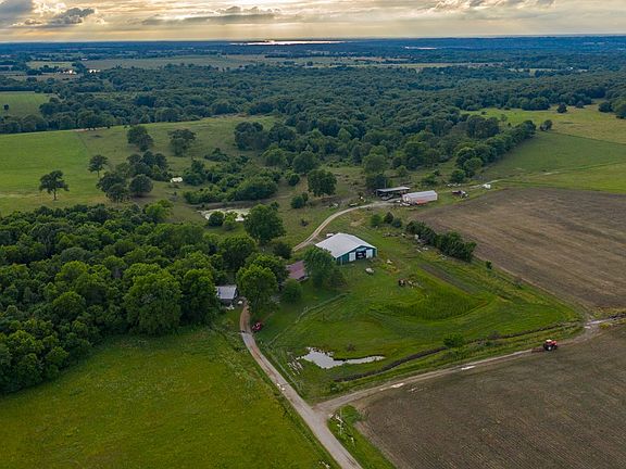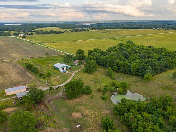 A beautiful country home to raise your family or live your weekend lake getaway dream! This 1,200 square foot 2 bedroom 2 bath ranch home sets up beautifully on 5.24 acres with a long private drive to tuck you away from the highway. Bring your horses and enjoy the large front pasture and ponds that you can look over from your front porch and watch the sunsets over the Truman Lake. Bucksaw marina is only one mile from your home giving you endless access to boating, hunting, and fishing. This property also provides one large barn (85x60) to keep your horses and hay in the winter and a smaller 40x30 with lean to for farm equipment as well! This home is ready for you, come see all of the beautiful views it has to offer. It is time to move to the country and enjoy the farm lifestyle by the lake!