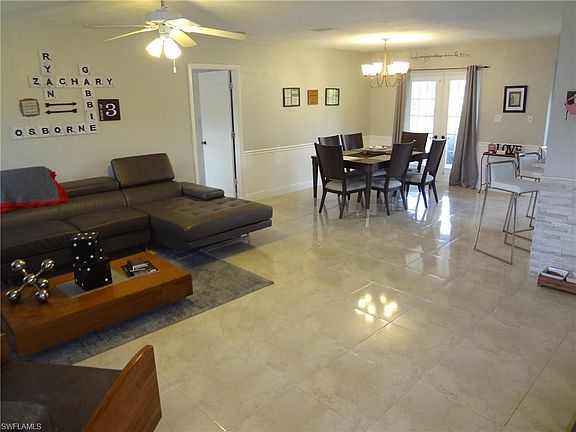 Opportunity knocks! Very nice home in the sought after Palmetto Pine Country Club area! Nice, OPEN floor plan with ALL TILE floors and FIREPLACE! City water/sewer ASSESSMENTS ALL PAID! Lots of 'newer' items, BRAND NEW FENCE, A/C in 2018, dimensional shingle ROOF in December 2017, NEW garbage disposal, overhead garage door spring, paint inside & out, tile floors, baseboards, remodeled kitchen, tankless water heater, ceiling fans, & more! Inside laundry with cabinets & wood faux wall. Good sized master bedroom with two closets (one is walk-in)! Master bath has new dual sinks, re-done shower, and new toilet! Guest bath has newer granite top/vanity & new toilet! French doors to screened lanai with 'Florida glass' screens on bottom. Mature landscaping! Plenty of room to add a pool. GREAT LOCATION-convenient to Veteran's Pkwy and Pine Island Rd! WON'T LAST!