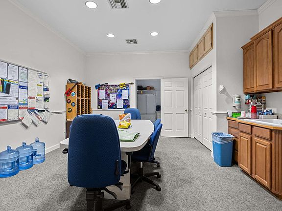 This commercial office complex features three free-standing office buildings, with two currently occupied. One long-term tenant is the Auditor General. The fourth building, equipped with garage bay doors, is used by the owner but can be vacated with notice. Each office building has dedicated parking and easy road access. Additionally, the complex offers three undeveloped plots for future expansion or customized development. This facility supports various business activities in a professional and accessible environment.