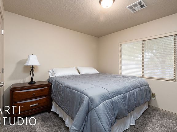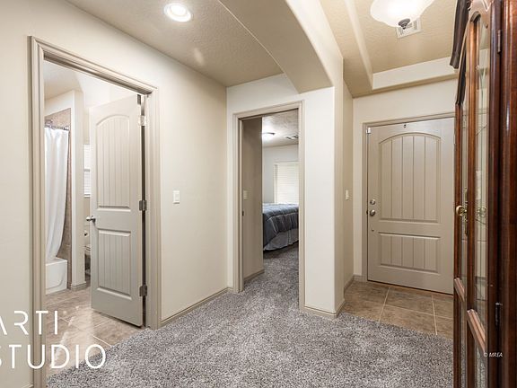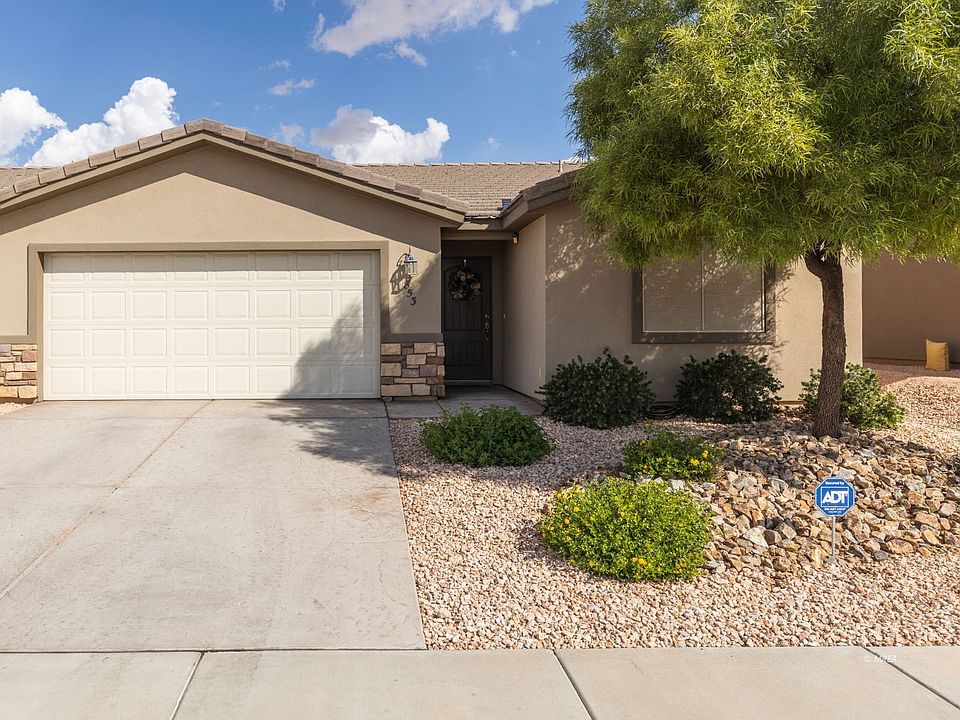 You'll love this townhome located in a beautiful neighborhood. Enjoy the privacy of an enclosed back yard complete with a hydropool trainer spa only 1 year old, measuring 14 feet long. The spa is included but can be removed if not wanted. Kick back under the extended covered patio accentuated with brick pavers extending across the back of the home. The inside boasts an open floor plan perfect for family gatherings, granite kitchen countertops, and large tile flooring throughout the kitchen area. The home is located only minutes from Walmart, other stores and restaurants, the hospital, and the freeway for easy access to Las Vegas and state and national parks.