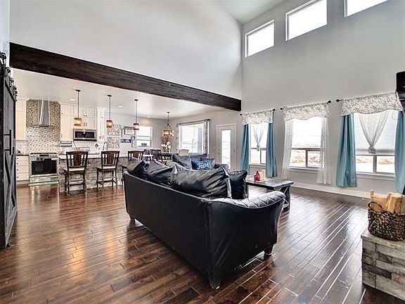 Looking for a little elbow room? This gorgeous 3345 square foot home on 2.20 acres in Ruby Canyon Estates could be the home for you. This home is situated on one of the higher lots providing stunning 360 degree mountain views and views of the private lake to recreate and cool off in the summer. Enjoy custom finishes throughout this home. The kitchen has an oversized island, quartz countertops and is open to the dining and living room. Vaulted ceilings, exposed beams, hardwood floors with inset tile, barn doors, oversized mud/laundry room which is accessed from the 4 car tandem garage. The master bedroom is on the main level with a free standing soaking tub and oversized walk in shower. Upstairs is a loft, a huge bonus room, 2 bedrooms and a bathroom. The covered east facing patio will be a great place to hang out on hot summer evenings. Room to build a shop, and park your toys.