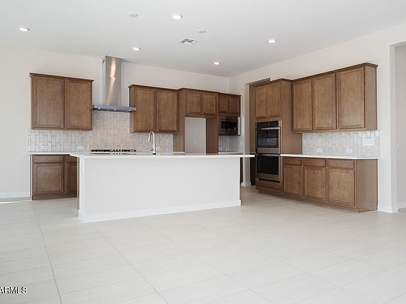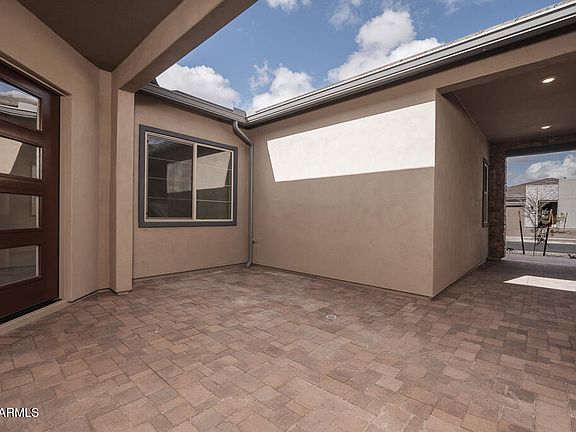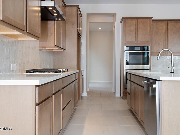 Desert Modern 4-bedroom home in Blossom Rock, a community that offers a clubhouse, playground, and a pool. Loaded with designer selections, this home features an office, game room, 3.5 bathrooms, a 3 bay tandem garage, and a 1 bay side turn garage. The Executive kitchen includes a 36'' gas cooktop, Della Terra Hana Sky Quartz countertops, custom tile surrounds at the backsplash, and upgraded Benton Birch Quill cabinets. Other highlights include an extended dining room, a 16' multi-slid glass door at the great room, smart home features, and 12 x 24 tile flooring with upgraded carpets. The primary bath includes a frameless walk-in shower with custom tile surrounds and quartz countertops at the vanity. LEED certified home with pavers at the porch, courtyard, and driveway.