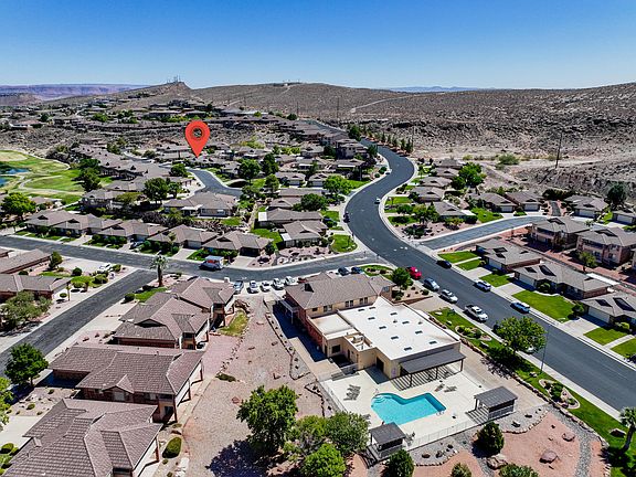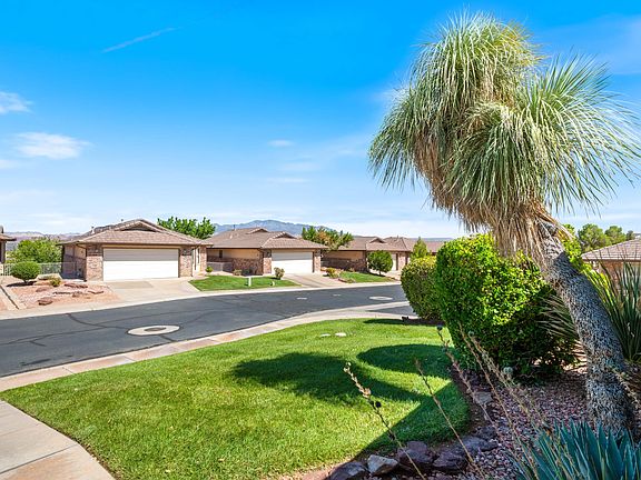 This move-in-ready home, located near Southgate Golf Club, sits on a desirable corner lot and has been meticulously maintained as a vacation/second home—never rented. Recent updates include new carpet, fresh paint, and more, making it feel fresh without the hassle of renovations. Inside, vaulted ceilings create a light and open feel, while the 3-bedroom, 2-bath layout offers just the right amount of space. The covered back patio is perfect for relaxing in the shade, and the HOA handles all yard care—so your weekends stay free. You're also just a short stroll from the neighborhood pool, tennis courts, and pickleball area. With quick access to everything St. George has to offer, this home is easy to fall in love with.