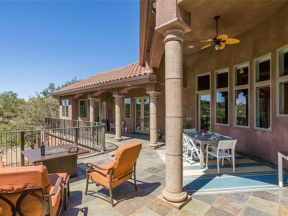 Welcome to LUXURY!! Located in the gated community of beautiful Canyon Oaks Golf Course, this home offers over 3500 ft.² of sophisticated living! Upon entering the home you will notice the remarkable architecture and custom amenities that make this home a standout! This home features beautiful African mahogany cabinets and flooring, flagstone flooring, blown glass lighting throughout, curved walls and incredible hand forged wrought iron accent. The kitchen features granite countertops, a large cook island, two stainless steel refrigerators, double ovens, a wine refrigerator, a huge walk-in pantry and an extra-large eating bar. The kitchen opens onto an elevated dining area with outdoor views, a family room with built-ins and a 72 inch TV, a formal living room that focuses on a cozy gas fireplace, a den/office and a separate formal dining room. The romantic master bedroom also centers on a fireplace and includes a huge bathroom with jetted tub, two commodes and two walk-in closets. The oversized 3 car garage has custom cabinets, a workbench and additional room for your golf cart. Vivid sunsets from the huge back patio with multiple sitting areas that call for entertaining, outdoor dining or simply taking in the views.