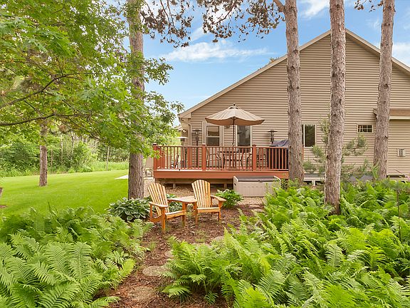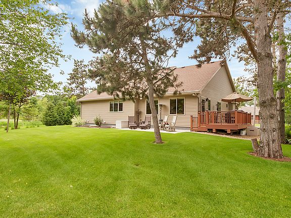 Custom-built, 3500 SF rambler with vaulted ceilings in main living area and four-season porch, 5BR and 3 bathrooms. Beautiful views of pond and woods from porch, master suite, deck and patio. Open floor plan, with granite countertops and custom cabinets throughout, custom-designed fireplace and many extras. Master suite, 2 additional bedrooms and laundry room on main level. The daylight lower level has a spacious family room with corner fireplace and coffee bar, 2 large bedrooms, bathroom with whirlpool tub and heated floors throughout. Substantial storage, sheet-rocked, painted and heated garage, mature landscaping. Drive your golf cart to Oak Hill Golf Course directly from the neighborhood. 320-333-7265 for more information/showing.