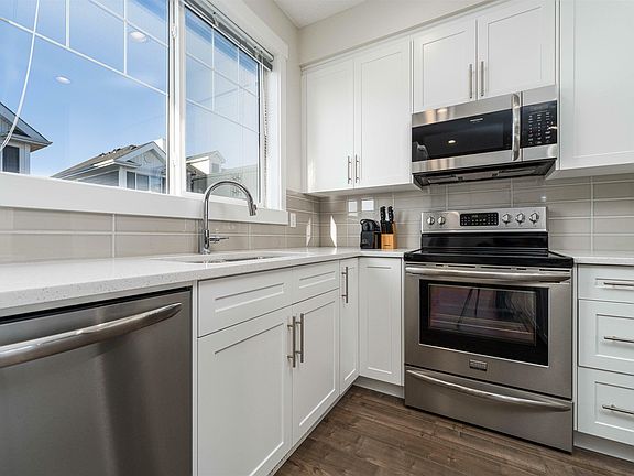 Located in a charming Fort Saskatchewan, this townhome boasts 3 large bedrooms and 2.5 bathrooms. The perfect balance of comfort and style, this property features stone countertops throughout, stainless steel appliances, and high ceilings. The entry level offers a bonus space, perfect for a home gym, office or recreational area. The upgraded white kitchen is open to the main floor living space, making it great for entertaining. Upstairs, the primary bedroom is a relaxing oasis with two closets, large windows, and an ensuite bathroom with a large shower. The convenience of having a washer and dryer on the upper level makes laundry day a breeze. The other two bedrooms are a great size with a full bathroom providing plenty of storage space. With lower condo fees, this easy maintenance property is perfect for young professionals, families, or downsizers. Plus, an attached garage provides shelter for your vehicle year-round.