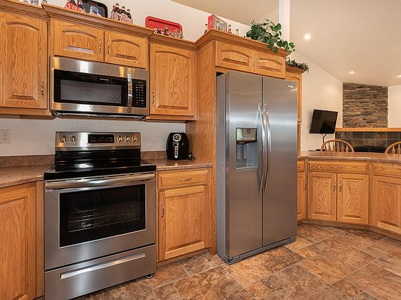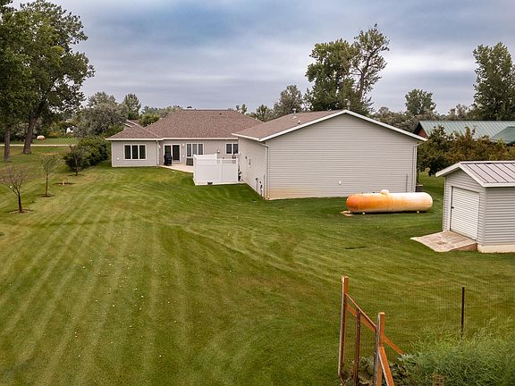 Rural NW Bismarck PATIO HOME and SHOP with no special assessments The heated and air conditioned SHOP is 32' x 44' (heat is both radiant gas & electric forced air) with BATHROOM, hot & cold water, floor drain, 11 foot tall overhead doors and its own septic system. The 2,212 sq. ft. patio home has geo-thermal heat, cathedral ceilings, open concept & neutral colors! The living room has a beautiful corner slate fireplace & sliding door access to the HUGE PATIO, the kitchen has custom oak cabinets, heated floors, snack bar, pantry cabinet, stainless steel appliances and lots of cabinet & counter space, there is a spacious dining room area & bright family room with access to the massive patio & backyard! The home has a great layout with SPLIT BEDROOM floorplan, 3 bedrooms & 2 baths. The large primary suite features a walk-in closet, ceiling fan & walk-thru bathroom w/dual sinks, whirlpool tub, separate shower & convenient access to the laundry room w/cabinets. Both bathrooms have in-floor heat! The oversized double attached garage is finished w/heat, floor drain and hot & cold water. The lot is almost an acre with established trees surrounding the yard, an enclosed garden spot & bonus yard shed! This home is located near Hoge Island Boat Ramp.