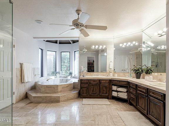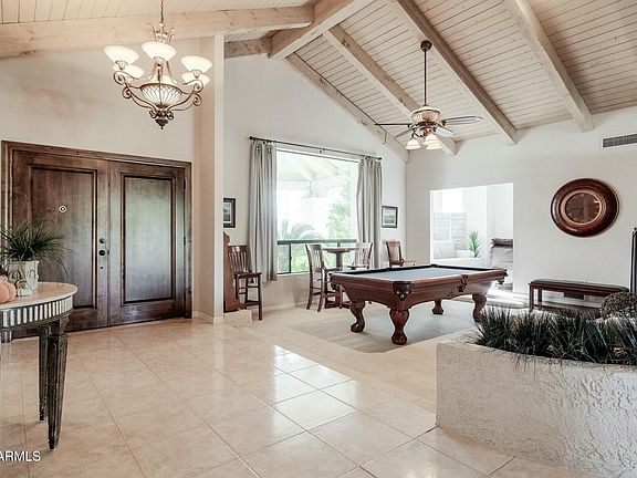 Best Value in Area! Cul-de-sac lot in highly desirable central Scottsdale neighborhood, comprised of large lots w/ custom renovated and new-build constructions. Spacious home with open floor plan, features 3,819 SF on 37,800 SF Lot, 4 BR + Den, 3.5 BA, 16' vaulted wood ceilings, skylights, dual fireplace, 3-car garage w/ storage closets, ±1,000 SF covered rear patio, pool, semi-circular driveway, RV gate, attractive landscaping, and surplus land area w/ potential for ancillary expansion (i.e. ADU/guest, office, sport court, play zone, RV/boat storage, etc.) Excellent proximity to public/charter/private schools and rapidly growing retail/hospitality/entertainment district w/ Loop 101 access. NO HOA (See Documents Tab for Recent Updates) AC Units were updated in 2019 and 2021. Home being sold "AS IS"