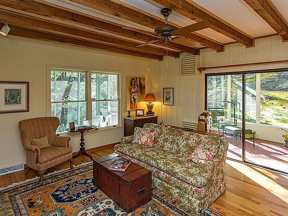 This house is a Outdoor/Hiking enthusiast's dream! You can truly escape from the pressures of everyday life here. This is a one of a kind property. Surrounded on three sides by the over 7,000 acre Caesar's Head State park, you have privacy and miles of trails at your doorstep. This well-built custom home was built by the owner. From the moment you drive up the gravel driveway you will know you are in a special place. There is a detached 2-car Carport just steps from the house. The fairytale-like grounds are full of private garden spots and there is even an open covered Gazebo to spend leisurely afternoons relaxing. You can grill out on the ivy-covered Chimney Ruins still standing tall on the grounds. When you open the front door, there is a Bedroom with many built-in Bookcases and double Closets on the right. On the left is a full Bath with Shower. The Laundry is conveniently located here with plenty of natural light. Going into the warm and inviting wood-panelled Greatroom, there is a Fireplace with Gas Logs and you can see through to a huge Screened Porch which overlooks the Park. There is also a sliding glass door leading out to the Greenhouse/Florida room. The Great Room also features many more Bookcases and Built-ins. Beyond the Fireplace you enter into the Dining area which has French doors going to the Screened Porch. The full Kitchen features a downdraft cooktop and all the conveniences. Upstairs is a delight with two Skylights - one in the hallway and one in the full Bath with Tub/Shower combination. The two Bedrooms upstairs are spacious and comfortable. Upstairs off the Hallway, there is a huge Storage area in the Attic space with flooring and shelves. The owner has thought of everything - there is also a huge 260 Gallon Propane Generator to keep the lights on for several days. The quaint town of Brevard NC is only around 10 miles away - convenient for shopping, dining and other cultural activities. This home is not in an association so no additional HOA fees. There is a Path leading from the rear of the property to the State Park Trail System.