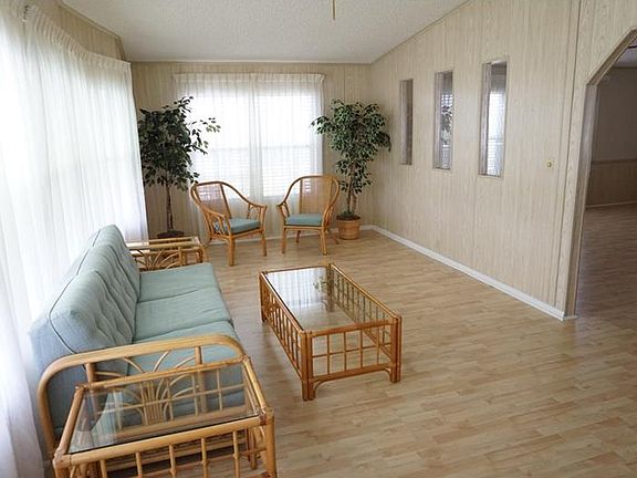Land Owned 55+ Community. It's time for you to enjoy the Florida Lifestyle in the perfect 55+ Pet friendly community. Beautiful and well maintained 1343 sqft 2BR-2BA double wide. This HOME FEATURES--NEW Samsung Washer & Dryer 2015, NEW Roof System 2013,A/C system replaced in 2004. Large kitchen with refrigerator, range and dishwasher is perfect for the chef in the family, the dining area is right next to the kitchen for convenience and perfect for entertaining family and friends, (dining room table stays). Lots of cabinet space with build in cabinet wall unit in the dining room and florida room, perfect for additional storage and displaying those cherished items. The Large Florida Room is bright and airy, perfect to relax and enjoy a good book or watch TV or just take and afternoon snooze, (the Rattan furniture is included). Exceptionally large master bedroom with master bath offers lots of cabinet space, EZ entry stall shower. Laminate flooring throughout and the bedrooms are carpeted. Walking distance to the Club House, tennis courts, shuffleboard, 2 heated pools, bocce all overlooking the 65 acre lake. The public golf course is conveniently located with golf cart access. Enjoy the outdoors, walking, biking or driving your golf cart in this active & pristine 55+, land owned community.