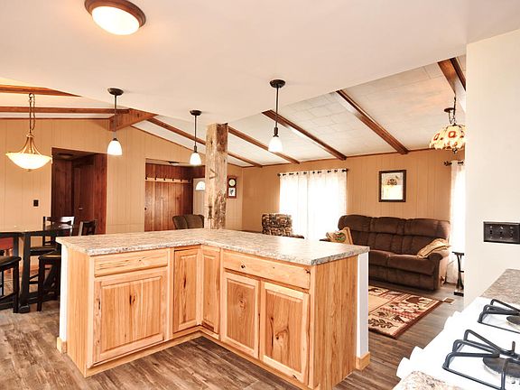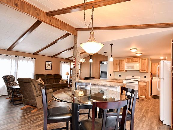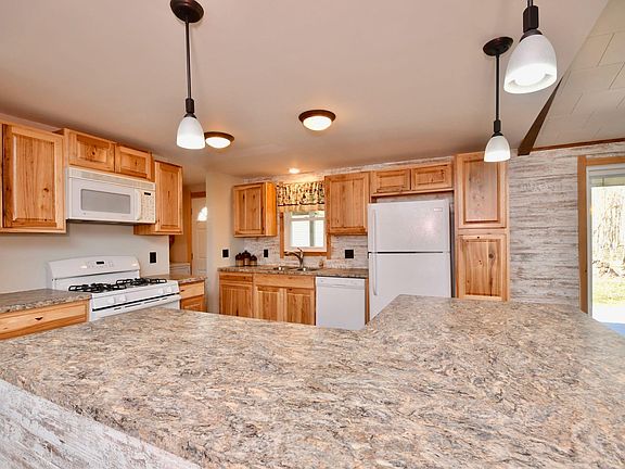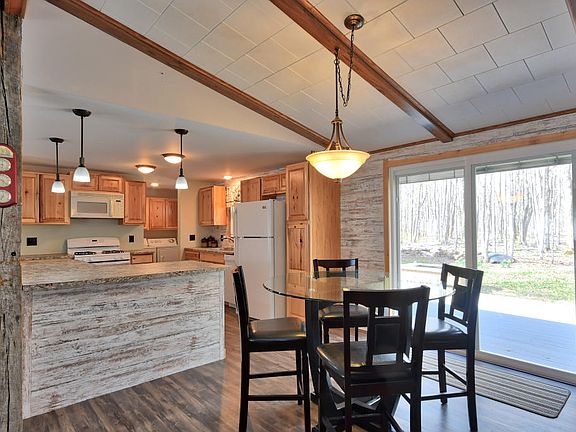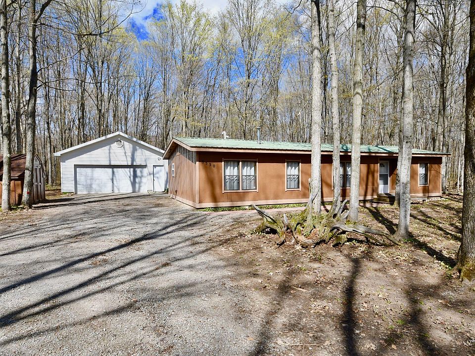 Up North getaway in the heart of the snow belt. 3 bedroom, 2 bath ranch with 24 x 24 heated garage for your toys. Home features a large living room w/cozy gas stove, vaulted ceilings, updated kitchen with hickory cabinets, laminate flooring, new sliding glass door with built-in blinds. Home has a master suite with updated bath and walk-in closet. New composite deck, 14' x 15' concrete patio, large fire pit for summertime entertainment. 8' x 12' shed for additional storage. Seller is willing to sell the 12' x 30' RV port. RV port not included in the sale. Furnishing are negotiable.