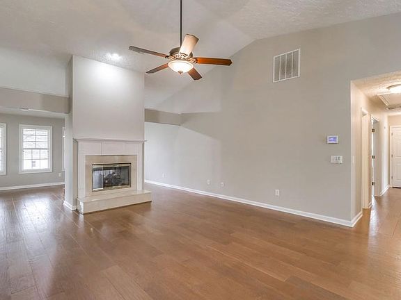 Move right in! Open floor plan w/ new interior paint and wide plank hardwoods throughout except in the baths and laundry room, which have tile! Vaulted Great room and vaulted sunroom share a double sided fireplace with gas logs and raised hearth (marble in the great rm and brick in the sunroom). Large kitchen with granite counters, tile b'splash and 2 pantries! Oversized master suite has a sitting area, his / her walk-in closets plus a 3rd closet! The renovated master bath features double vanity, garden tub, custom tile shower, new hardware and new fixtures! Screen porch overlooks the private and level back yard. Irrigation sys., security sys., termite bond, central vacuum, 3 car side entry garage and a new water heater (2019). This charming home is located in a swim/ tennis neighborhood with sidewalks and street lights!!