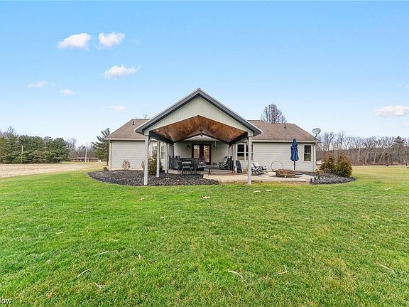Location is everything on this ranch home in Western Reserve LSD. Built in 2010, this three bedroom ranch is waiting for a new owner. As you enter this home the formal dining room is to your right and a den/flex space to the left, you continue through to the open kitchen/living space. The kitchen was remodeled in 2017, this added cabinetry, SS appliances, huge prep island and a breakfast bar that the entire family can use. The split floor plan includes the owner suite on the right side, an en-suite bath and walk in closet and the laundry room with half bath is right down the hall. The opposite side of the home has two additional bedrooms and the other full bath. Out back you will find a covered composite deck/patio with wood cathedral ceiling and an uncovered patio with a fire pit. There is also a concrete basketball court out back, two car garage, shed and covered front porch. This one feels like a new home.