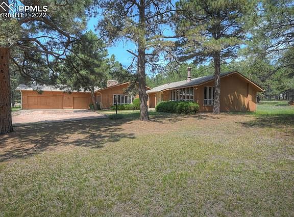 Spectacular Black Forest rancher tucked into the tall pines. Land is gently rolling and trees perfectly spaced for horses. There is a barn with 2 stalls and hay storage also. Home has a convenient one level living floor plan. Spacious open great room with beamed ceiling and great southern facing light exposure. Home stays cool during the summer and warm during the winter. Covered entry opens to the Dramatic freestanding moss rock wood burning fireplace that divides the living room from the dining room. All this is conveniently located for entertaining off bar area. Eat in kitchen looks into a bright and airy family room with a Timberline fireplace. Great space to cozy up on a cold winter night with a good book or a fun old movie. Walk out back to the deck for a BBQ or watch the horses stroll the back pastures. Relax in your Master suite complete with attached bath and walk out private access to the deck. Two additional bedrooms with a shared full bath complete the home. Attached 3 car garage is perfect for the car lover in the family. So much to love and what a GREAT property! Not many come along in the Black Forest as nice and well taken care of as this. Come take a look today!