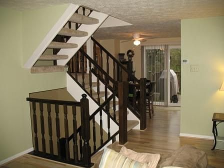 This sweet 2BR/1.5BA end unit has a great feel! Large fully-fenced rear yard,deck & patio. Open flrplan perfect for guests! Both BRs are HUGE & feat. large closets. Finished walkout basemt adds more space. Bonus rm is perfect office or gym. Gather around cozy wood fireplace in winter & enjoy yard & woods in summer! Cool cabinets in kitchn plus DR with loads of light. Shopping/restaurants nearby!