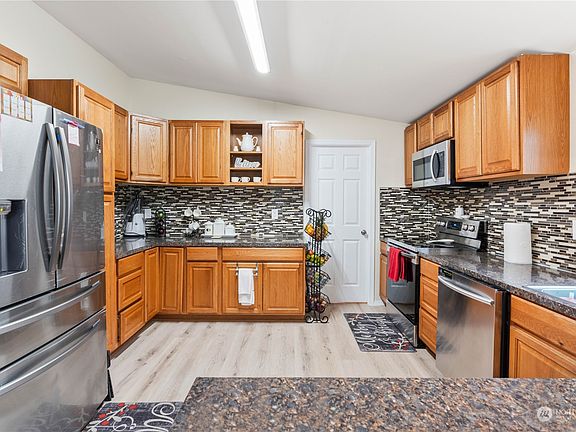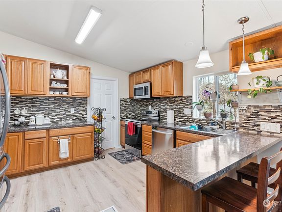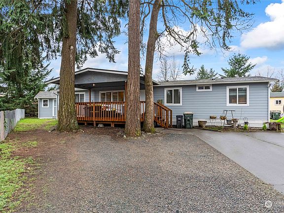 Secluded and private! Rainier Vista Mobile Home Park ALL AGES!, spacious 3 Br 2 Ba 1620 Sq ft home is situated on a private drive nestled back to a gorgeous greenbelt, beautiful trees and greenery along with quiet living are to be truly appreciated! Open floor plan offers large kitchen, living & family room, lrg master bathroom, large utility room, large covered deck. Recent updates include kitchen w/tiled backsplash, new paint, replaced siding, roof 2016, new carpet before closing. RV storage available.