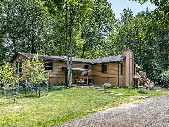 Minocqua Home under $250k! Convenient location, close to town and only a 1/4 mile from the Minocqua Sports Complex and Park. Wooded setting on the snowmobile/ATV trail, this rural home offers a wonderful environment for an active family. With everything from a fenced off garden area to playground equipment. A large deck leads to 4BD/3BA house which is laid out in open concept style with the Kitchen, Dining Area, Living room, Bath, and Master Bedroom on the main floor. Three additional Bedrooms are in the lower level, along with another Bath, Laundry, and Office. Other buildings on the property, are a 2 car garage and a shed. Enjoy the trails throughout the property, 3 apple trees and beautiful lilac bush.
