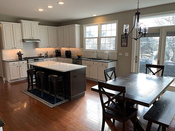 You will want to move right into this inviting home in the beautiful Village of Lakewood! You'll love walking in and seeing the living room see-through fireplace crackling and ready to keep you cozy warm in the chilly months. Follow the newly refinished hardwood flooring through the entry into your cheery kitchen, full of lots of white cabinets & granite counters. There's even a butler's pantry with wine frig. The kitchen opens to the family room, so everyone can spend time together! Take your morning coffee into the glorious sunroom with its vaulted ceiling to relax & enjoy the golf course view! First floor bedroom & full bath for someone who doesn't want to do the stairs or for guests to have their own space. The spacious master is highlighted with a tray ceiling, spa bath & generous closet. 3 more good-sized bedrooms upstairs. Enjoy the summer on the paver patio and the winters by the fire! Basement to store the extras and a big garage, too! Lots of new/newer. Beautiful sunset views! Don't miss it! Offering 2.5% to Buyer’s Agents