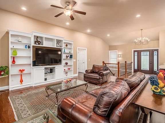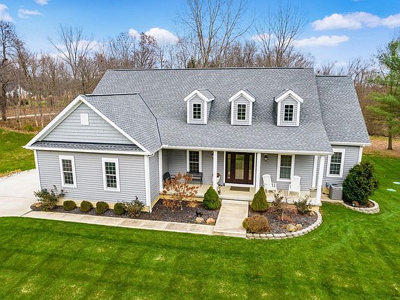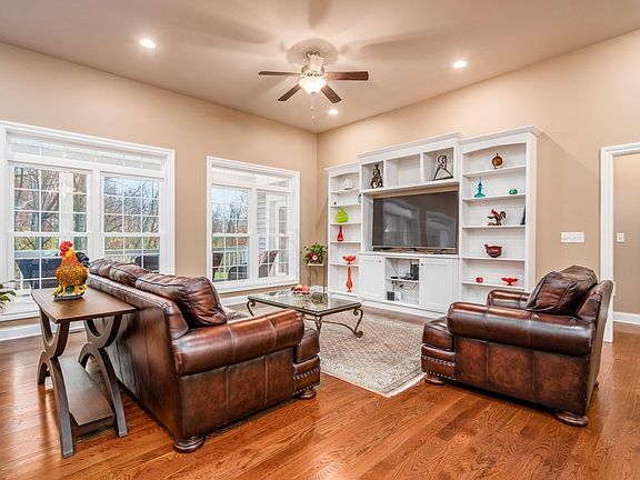 This exquisite custom-built home sits on 1 acre of wooded land, offering stunning views of nature. A creek flows through the property, accompanied by a custom stone firepit for outdoor relaxation. Inside, the 1st floor showcases gleaming hw floors, 15 ft ceilings, & abundant natural light. The open floor plan revolves around a deluxe kitchen w/granite countertop, custom white cabinets, SS appliances, & a pantry. The main level features 2 master bedrooms, each w/an en suite bathroom, walk-in shower, & spacious closet with organizational systems. Convenient 1st floor laundry is also included. The lower level offers a large, finished space w/2 storage rooms, 3rd bedroom, & 3rd full bathroom. The large rec room w/daylight windows & potential for a wet bar completes this incredible property.