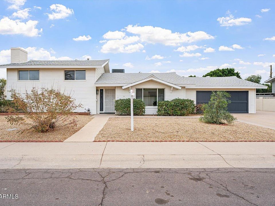 Beautifully Crafted Hallcraft Trilevel in Prime Scottsdale Location offers spacious, comfortable living. The main level features a bright living room, an inviting eat-in kitchen with electric cooktop, large pantry, an enclosed garage offers flexibility of a game room or extra living space, and an enclosed Arizona room. The lower level boasts a massive family room with a cozy fireplace, a generously sized bedroom, a full bathroom, and a convenient laundry room. Upstairs, the expansive master suite includes two closets, along with two additional bedrooms. Ceiling fans throughout enhance comfort. The backyard is perfect for entertaining, featuring a sparkling pool and a spacious covered patio. No HOA! Ideally located near Fashion Square, Old Town, and top-rated dining. PRICED TO SELL!