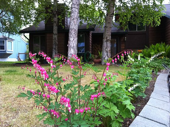 Experience the natural beauty of Alaska in this east-side Anchorage home with visiting moose and birds in your yard, a nearby salmon stream and millions of acres of wilderness and trails from your doorstep. This unique and loved house is within a 5-10 minute drive from the U-med district, military bases, shopping, restaurants, banking, cafes, movie theaters, workout facilities, (See Supplement) outdoor recreation, schools and more. You can also watch dog mushing races and the Iditarod racers on the neighborhood trails. This light and bright house has architectural details, a gourmet kitchen with New Viking Professional appliances, designer paint colors, renewable design touches of cork floors, concrete counter tops, architect designed open-concept master bathroom complete with a claw footed tub, remodeled bathrooms, new light fixtures, new carpet, new stair railing, new designer front door, tile and hardwood floors, 2 car garage, tons of storage space, garage workshop area, double dog house, a kids sleeping "cave" and much more! Large lot with backyard and home that borders a greenbelt and a spring fed year-round creek. Chugach State Park and trail access is within a few minutes walk, bike, jog or ski from your front door. This house has an exceptional outdoor living space and teams with floral displays unfurling all summer long. The yard feels like a botanical garden in peak bloom. Year-round heated greenhouse, mature raspberry and strawberry patches, apple trees, beautiful landscaping and perennial beds created by a master gardener, raised garden beds, manageable lawn, treehouse, shed for plenty of storage, custom ironwork, covered brick patio and decking system. 4 Star Energy Rating and home energy audit completed. New insulation in attics and crawl space, new windows, new hot water heater and on demand hot water heater for radiant floor heating in the attached greenhouse. New roof vents and new roof over Master bathroom addition. As well as, a remodeled attached greenhouse and exterior siding of Master bedroom addition. Designer details await you in this comfortable home. Quiet location and views of the Chugach Mountains allow for a completely relaxing home with plenty of privacy. This house has the perfect balance of all Alaska has to offer between amenities, nature and proximity to the city and lots of business opportunities. This unique house with designer and architectural accents is suitable for families, professionals, hosting gatherings, cooks, hobby and master gardeners, adventure enthusiasts, privacy and more.