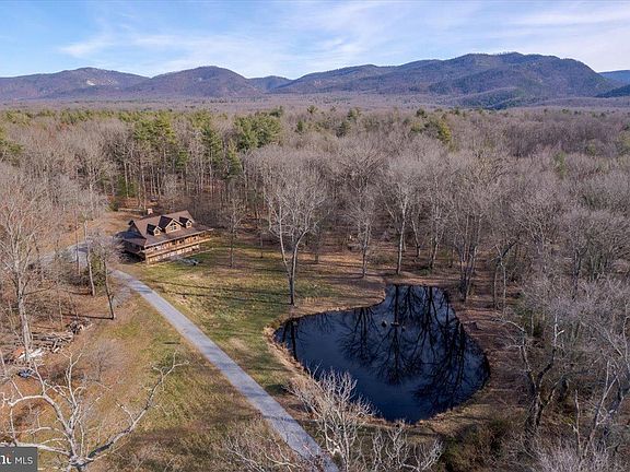 Dreaming of your log cabin getaway? Check out this WATER FRONT turn key AirbBnB Cabin in the woods! Featuring over 6 acres and your own private Pond! This stunning Daniel Boone Log Home has generated $100,000 in income in the last 12 months as a BUSY TURN KEY Short term rental. And with over 1600 unfinished sq ft in the basement there is tons of space to expand & increase rental income with bedrooms, rec rooms, theater room and much more! Vaulted ceilings & massive fireplace in the great room, Chefs Kitchen, Huge master bedroom on the main floor, two more private master bedrooms with en-suite baths upstairs, You'll love spending time on the wrap around porch, easily accessed by every side of the home, including the master bedroom, and overlooking the backyard and pond. NEW 2023Hot tub on the deck!Heat your home with the heat pump and supplement with the outdoor wood burning furnace to cut down those energy bills. Plenty of room to play, hunt, & explore on 6 mostly-wooded acres, and don't miss the detached Building with power - perfect for workshop/outdoor equipment storage space. Excellent location only minutes from Massanutten Resort, Skyline Drive, Merck, Coors, Elkton& much more. The perfect rental Cabin you have waited for!