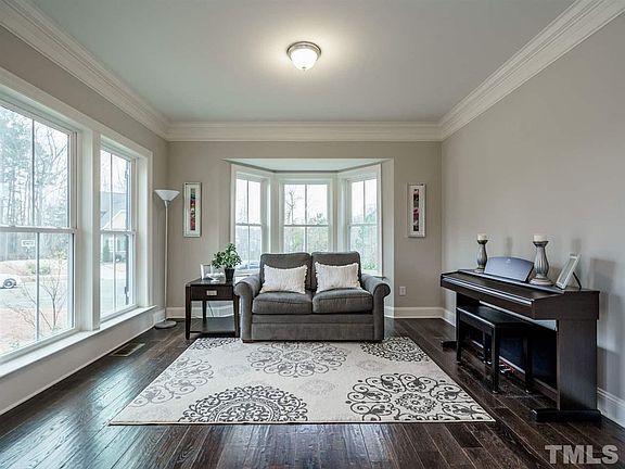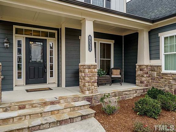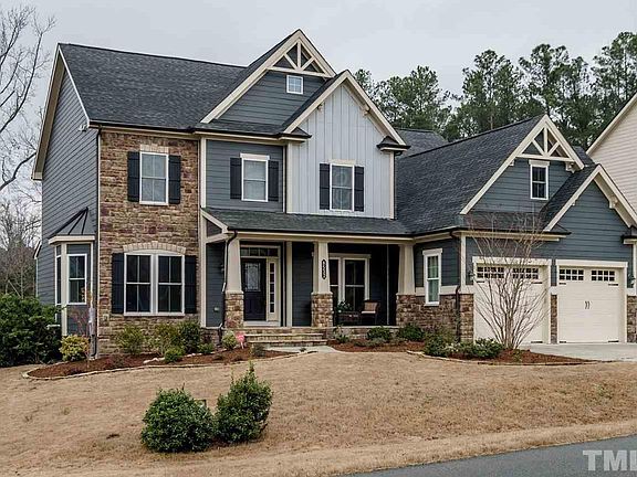 Highly custom 5br 5.5ba home in desired west Cary location. Hand-scraped hardwoods, huge open bright gourmet kit w/ Quartz counters and giant island opens to FR with detailed coffered ceiling and stone FP surround. Family workstation off kit adjoins walk-in pantry. Guest suite with private bath on main level. Upstairs offers 3 spacious BR's and Bonus. Basement features BR/BA, 2nd FR, game area and is stubbed for wet bar. Great storage. Home backs to private wooded area and sits on a quiet cul-de-sac.