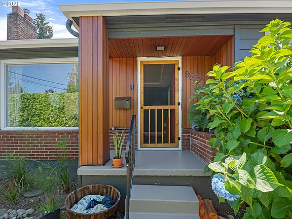 Fantastic mid-century bungalow hidden away on private, corner lot. Living room has cozy, wood-burning fireplace. Kitchen is fully furnished with all SS appliances. Main level includes original hardwoods, 3 bedrooms, 1 bath. Downstairs features huge family room, 2 rooms with closets, laundry room with washer/dryer. Yard is fenced, private and has established raised gardens. New interior paint, newer Hardiplank siding, water heater. Great location, easy I-84 & I-205 access, 0.3mi to MAX Station. [Home Energy Score = 5. HES Report at https://rpt.greenbuildingregistry.com/hes/OR10186489]