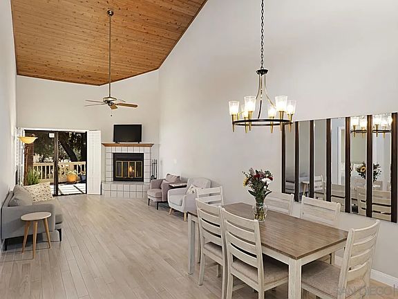 This beautifully upgraded Escondido townhouse stands apart from the rest, offering a rare combination of comfort, tranquility, and thoughtful enhancements that others simply can't match. With its prime location within the complex, this home maximizes natural light, creating a bright and airy atmosphere that fills every room. The soaring vaulted wood-beam ceilings and abundance of high windows further enhance the sense of space and light, setting this home apart. In addition to its exceptional interior, this townhouse boasts a spacious private patio, ideal for year-round entertaining or simply enjoying the serene mountain views. Unlike many units in the complex, this home also offers the convenience of a two-car garage—an invaluable feature for homeowners seeking extra space and storage. Recent upgrades include a new HVAC system, solar power installation, and a complete roof replacement, ensuring both energy efficiency and long-term durability. The remodeled master bathroom serves as a personal retreat with a luxurious spa tub and sleek fixtures, while the kitchen features new appliances that combine modern style with functionality. The immaculate landscaping and welcoming neighborhood provide a peaceful escape, while the home’s ideal location places you just a short drive from the beach, Temecula wineries, and San Diego. This one-of-a-kind property blends country living with city convenience, offering a lifestyle of comfort, community, and cherished memories that is truly unmatched in the complex.