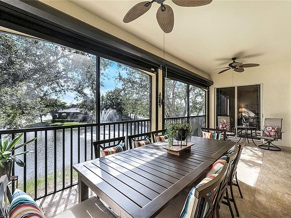 Enter into this beautifully updated Monterosso floor plan carriage home, showcasing one of the inviting lake views in The Club at Rapallo. From the moment you walk in, the thoughtful upgrades and warm, welcoming layout make this home stand out. The completely renovated kitchen is designed for those who love to cook, entertain or simply enjoy an elegant space. It features extended cabinetry with under-cabinet lighting, quartz countertops, stainless steel appliances, a custom vent hood, a built-in microwave and oven, and abundant storage. Every detail is stylish and functional. The open layout flows seamlessly into the dining and living areas with wood laminate flooring, creating a comfortable and connected atmosphere. Your primary suite offers an elegant renovated bath with new vanities, custom mirrors, cabinetry topped with quartz countertops, laminate flooring and a tastefully remodeled walk-in shower. One of the guest bedrooms is exceptionally spacious, complete with a Murphy bed and a charming Juliet balcony, ideal for hosting family and friends in style. Indulge in your spacious screened-in lanai, where gentle breezes and shimmering fountain views create the perfect backdrop for Florida living. With Storm Smart solar screens, impact-resistant windows and doors, a new roof (2023), and air conditioner (2023), this home provides comfort and peace of mind year-round. The Club at Rapallo offers resort-style amenities, including a clubhouse with indoor and outdoor seating, two lagoon-style pools plus two satellite pools, a screened-enclosed lap pool, a state-of-the-art fitness center, five clay tennis courts with an onsite pro, bocce ball courts, bike and jogging trails, and beautiful lakes with fishing piers and fountains. The location couldn’t be better, just a short distance to Coconut Point Mall, with convenient access to SWFL International Airport, top-rated medical facilities, and the area’s fine beaches, dining and entertainment. From morning workouts to sunset experiences and community gatherings, every day at Rapallo feels like resort living. This is the lifestyle you’ve been waiting for, so schedule your private tour today and fall in love the moment you go inside.