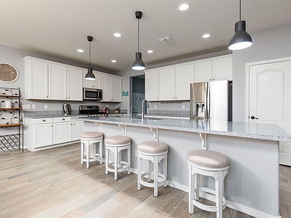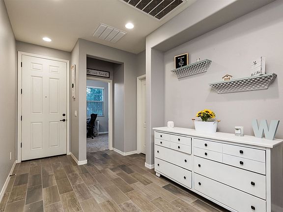 Light and bright with everything right!!! Like new. Built in 2017. You will love the wood tile flooring throughout the traffic areas and neutral carpet in the bedrooms. Bright white cabinets with 42'' uppers in the kitchen, granite counter tops, massive island with bar stool seating, pendant lighting and stainless appliances featuring gas cooktop. Tech station with seating area for your laptop and shelving to show off your treasures. Walk in laundry room and mud room as you enter the home through the garage. A true split floor plan with two bedrooms off the front wing and the master bedroom is tucked in the rear of the home. The master bathroom has a dual sink vanity with a walk in shower and spacious walk-in closet. Covered patio in the backyard and beautiful lush green grass backyard.