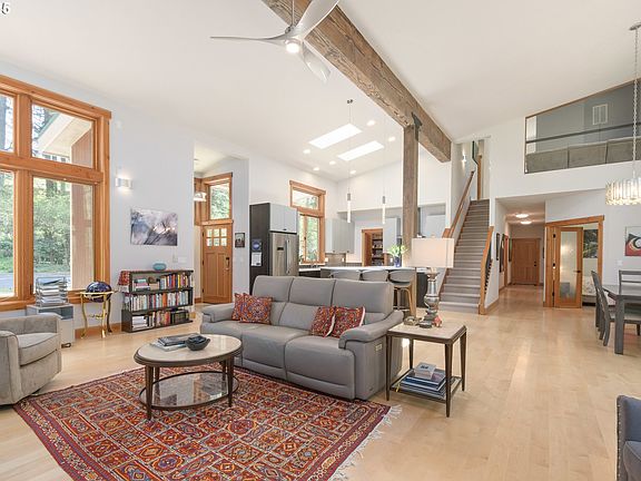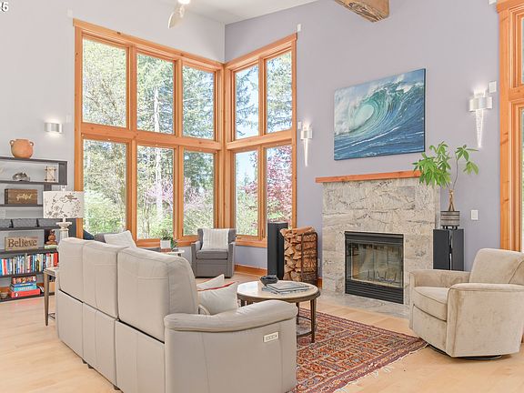A unique blend of modern luxury and natural serenity in this Custom Contemporary on 7+ private acres close to town! Thoughtfully designed and carefully crafted to make the most of the magical setting with beauty from every viewpoint. The knockout entry with soaring ceilings leads to the generous open-concept living area with a striking custom fireplace, walls of windows, an abundance of natural light, and soothing views of the pond and forest. The sleek modern kitchen is a chef's dream with quartz countertops, stainless steel appliances, and a spacious pantry. The stylish main level primary suite is a sanctuary with a lavish spa-like bathroom with a walk-in shower, free-standing soaking tub, and a commodious walk-in closet. A second main level bedroom suite with two connected rooms and half bath allows multiple options for a guest suite, office or studio. The upper level has a comfortable family room with treetop views, two more bedrooms, and the fabulous sun-drenched second story deck. Need more room? A beautifully appointed detached guest house includes one bedroom, one and half baths, a full kitchen, washer & dryer, and two private decks offering more versatile space for work or guests. The grounds have ample garden space, walking paths, and acres of privacy. Ideally situated in a serene setting with a carefree commute to town. Highly desirable location. High design. Perfect.