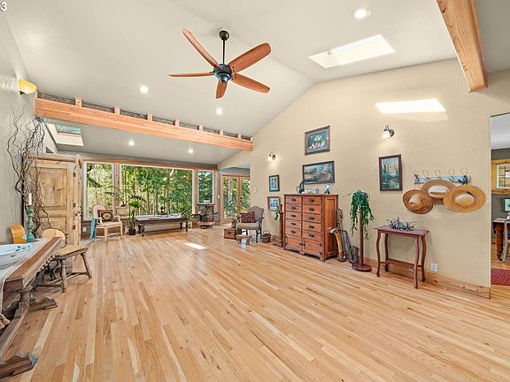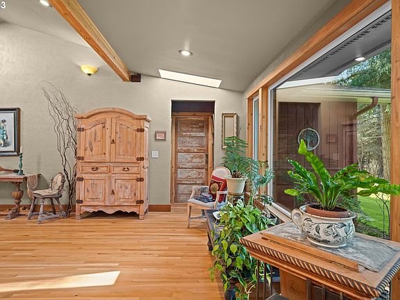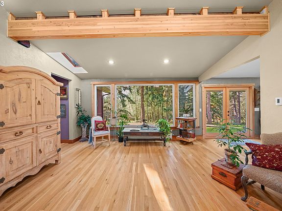 Location, Location, Location! Hidden in the country in one of the most sought after school districts in Oregon; yet only a 15 minute drive to Eugene! Everything in this home has been carefully curated to create a warm and welcoming feel the minute you step inside. Surrounded by forest, wildlife frequent the park-like grounds daily. A filtered view of Mt. Pisgah looms in the distance, perfect for the avid hiker. The Spacious interior is amplified by vaulted ceilings, skylights and expansive windows. Use of natural cedar and hardwood floors lend to the home's warm nature. Main level master with en-suite has french doors opening up to your own private deck, perfect for a future hot tub! With 3 bedrooms and 2.5 bathrooms being on the main level, this is a perfect home to age in place and enjoy for years to come. A kitchenette is located in the second living space perfect for visitors or generational living. Convenient 2nd driveway with large circular parking pad is perfect for storing RVs, trailers, boats or room for a potential future shop? With 2 separate 200 amp electric panels there is room for expansion or EV charging. With over an acre of land, there is plenty of room for your pets, farm animals, garden and more. Full home inspection just completed! The home is in immaculate condition. OPEN HOUSE THIS SATURDAY 12:00 - 4:00 Call your broker or the number below for more info and a tour!